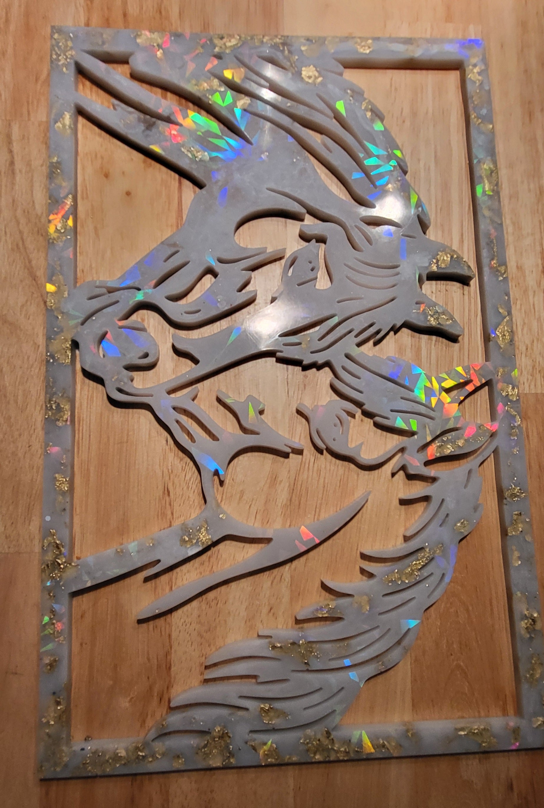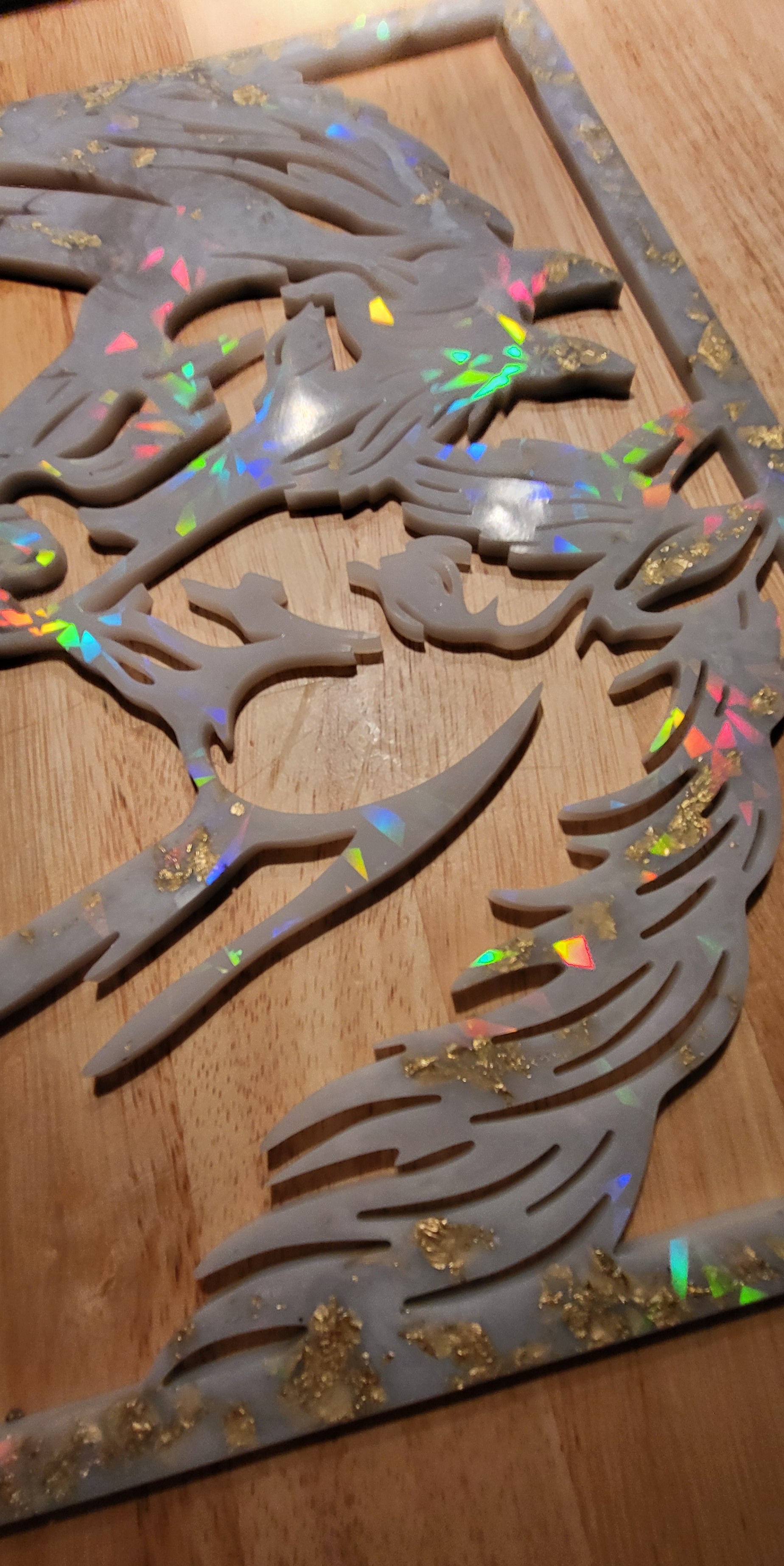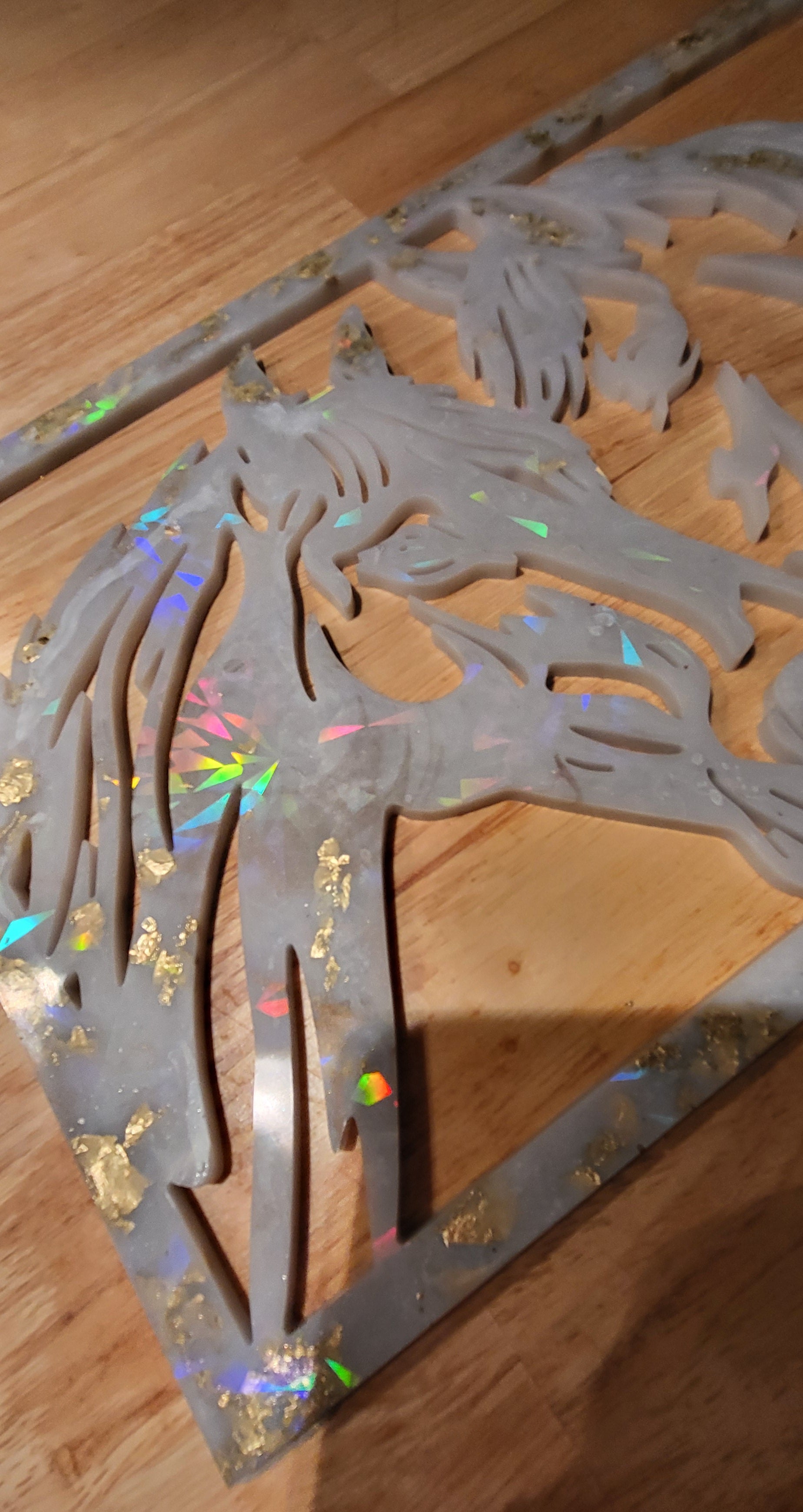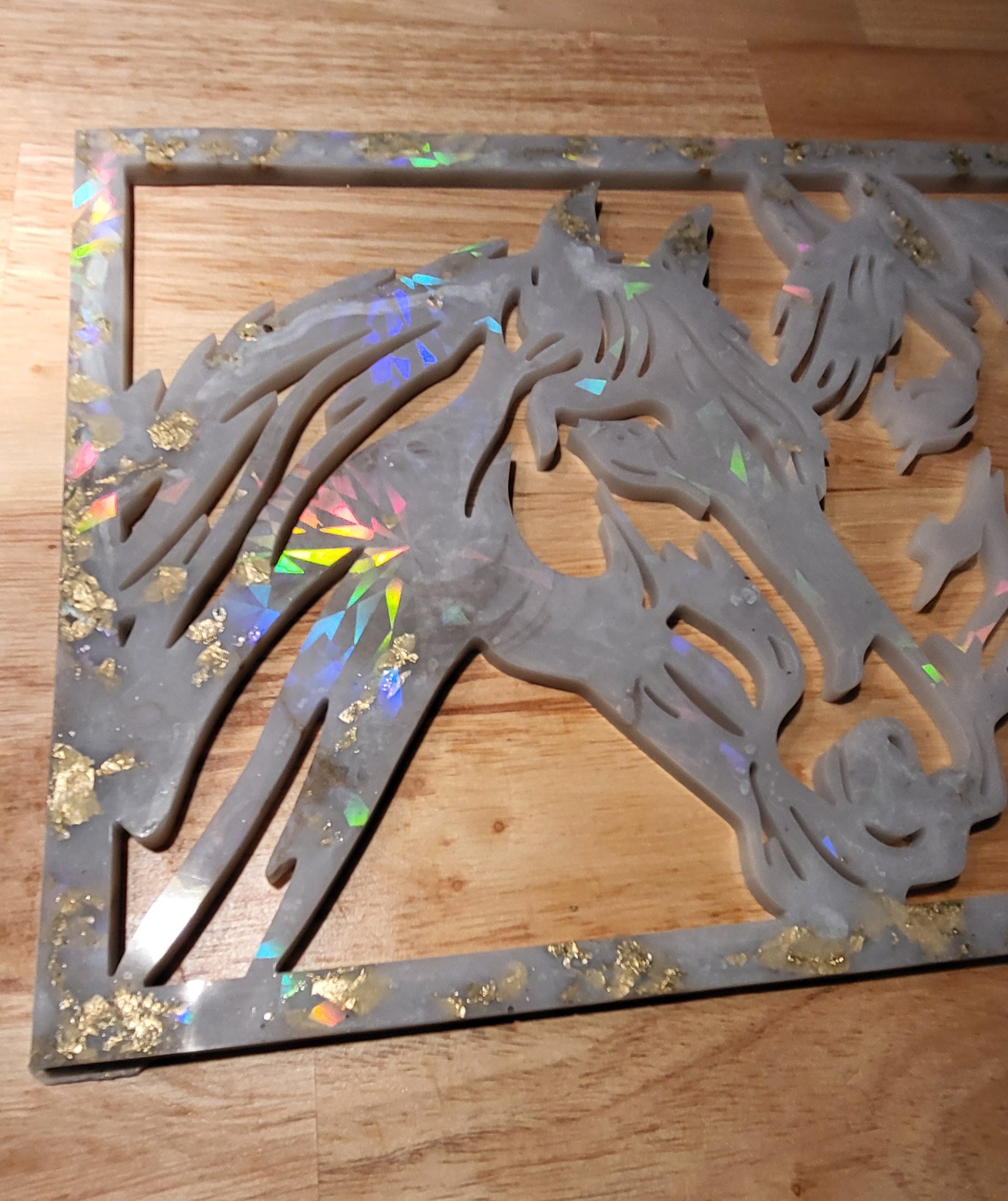 ✨ Cadre Chevaux Holographique 35 cm de longueur et 25 cm de large– Artisanal en Résine Époxy ✨
