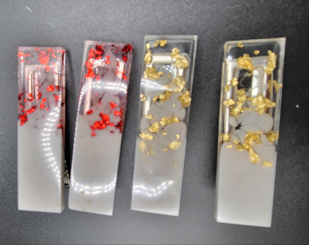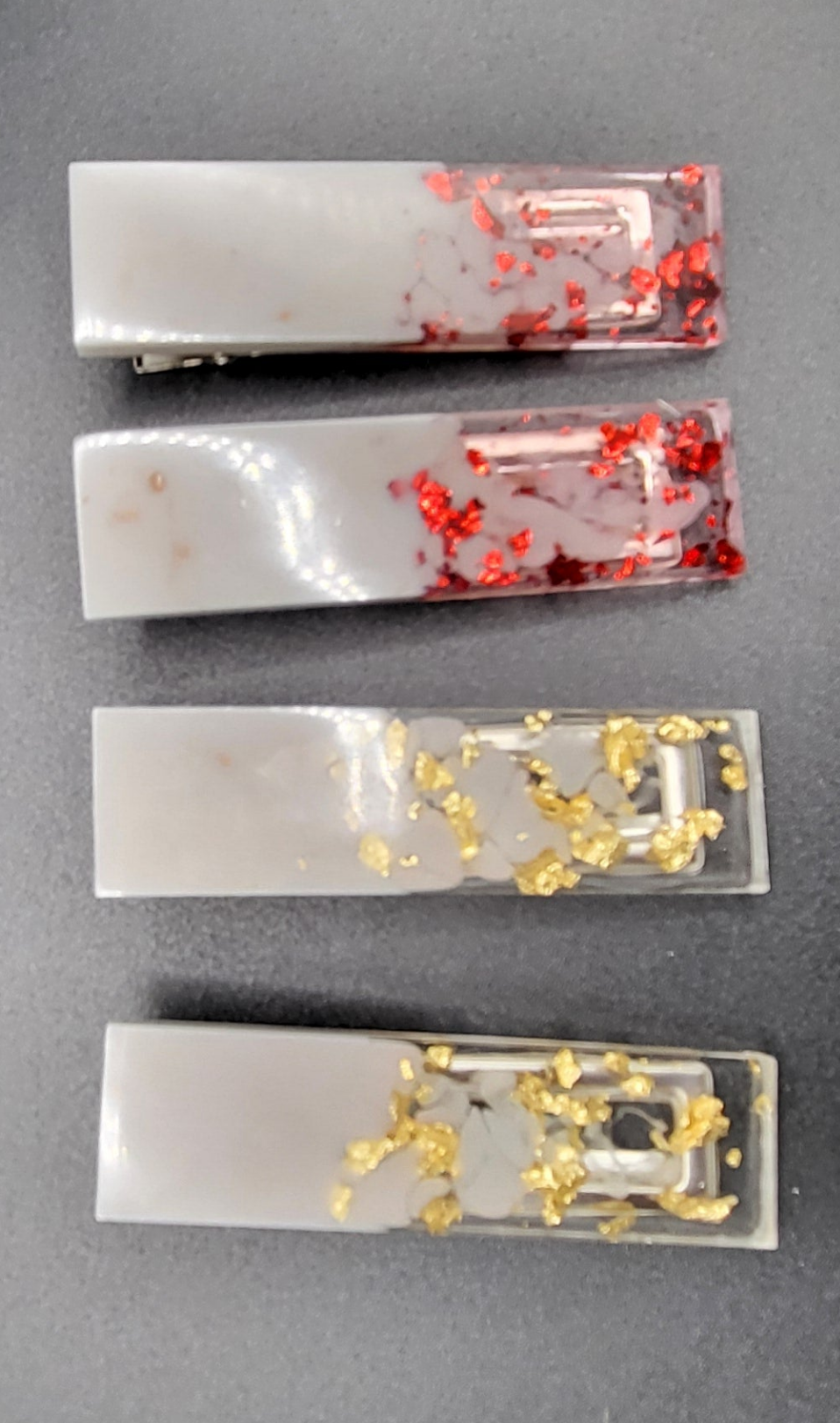 Lot de 4 barrettes en résine époxy – Pièces uniques et artisanales