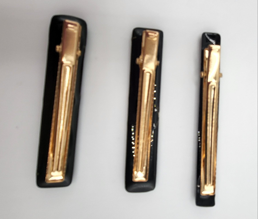 Lot de 3 barrettes artisanales uniques noir et feuilles d'ors