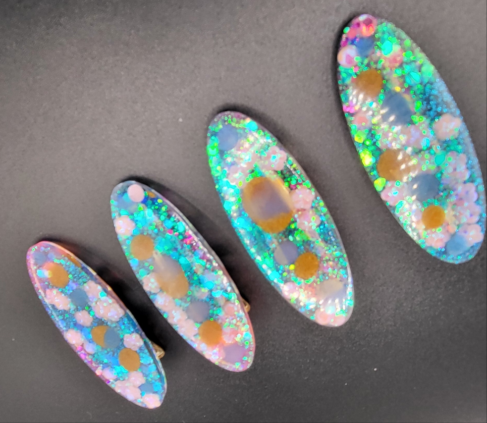 Lot de 4 barrettes en résine époxy – Pièces uniques et artisanales
