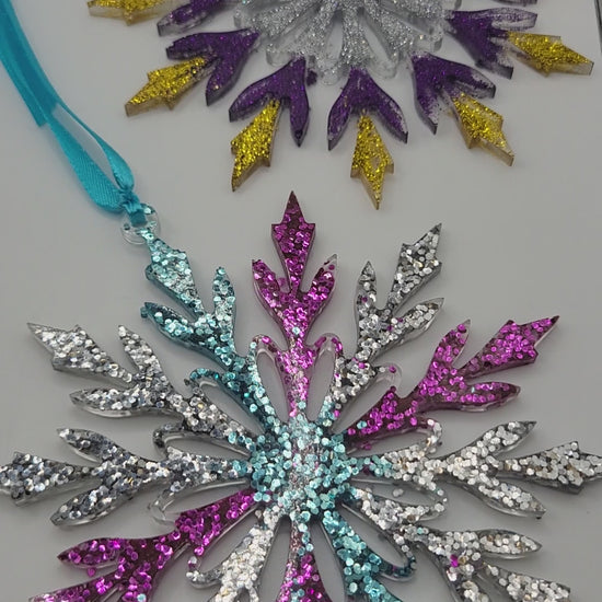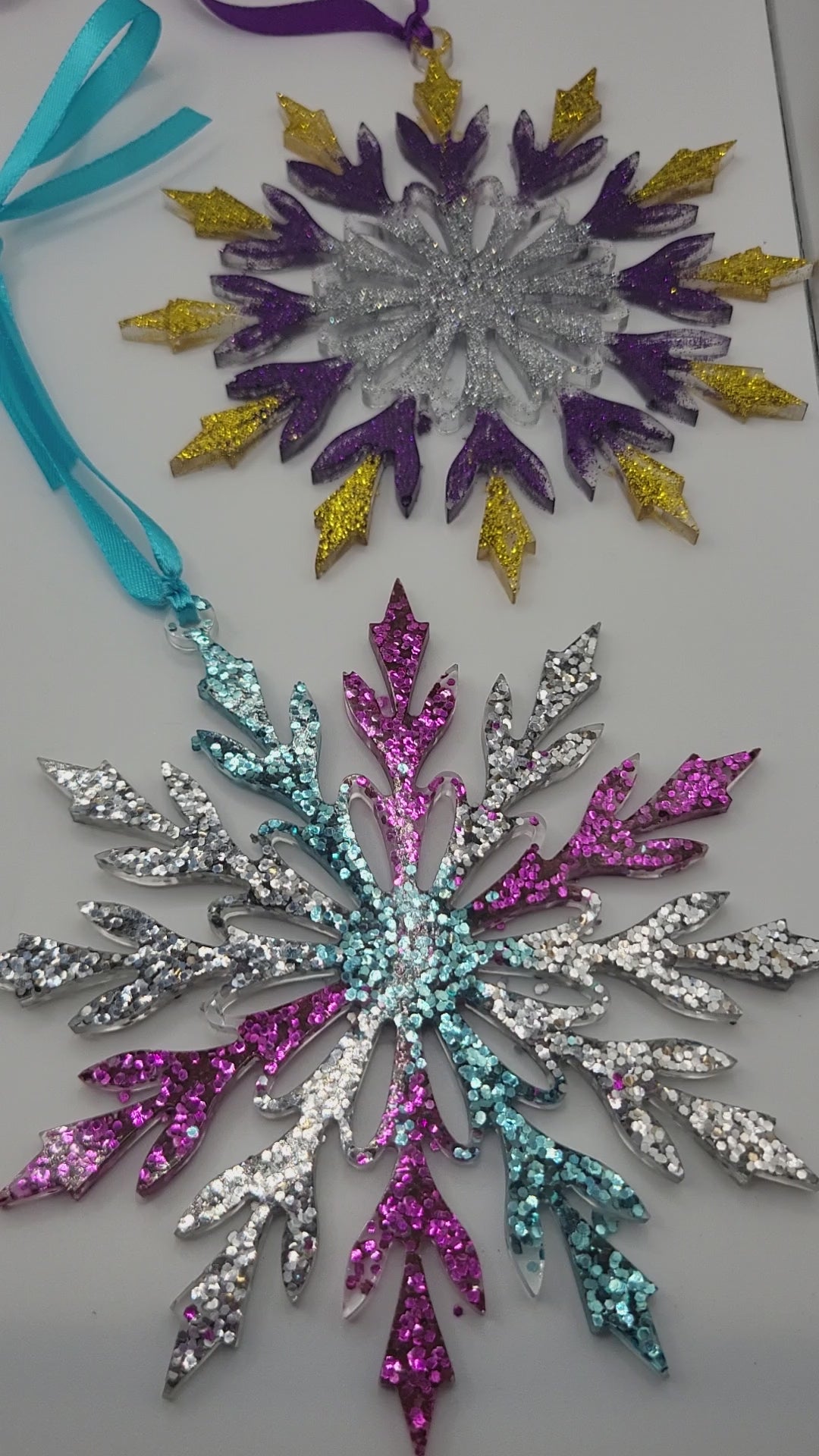 Ajoutez une touche magique à votre sapin avec nos boules de Noël artisanales en résine époxy. Chaque pièce est faite à la main, mêlant paillettes holographiques scintillantes et encres colorées pour un rendu unique et lumineux.