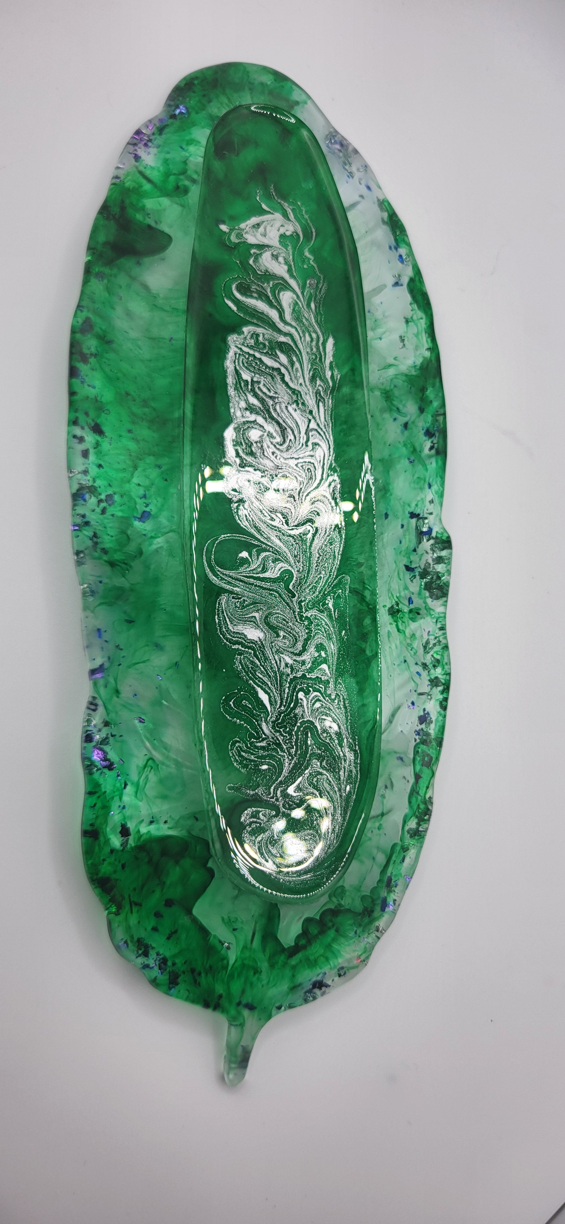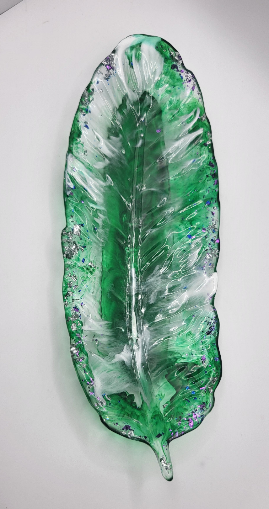 Vide-poche feuille en résine époxy – Vert & Blanc pailleté